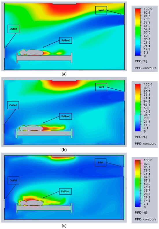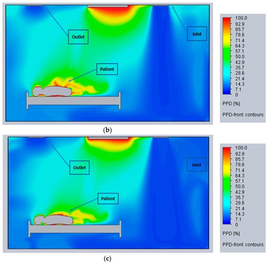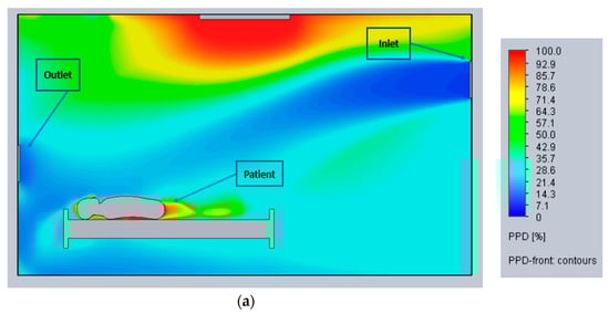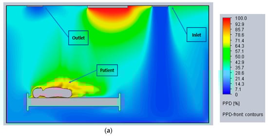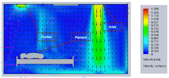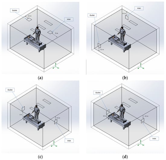 - Cho, J. Investigation on the Contaminant Distribution with Improved Ventilation System in Hospital Isolation Rooms: Effect of Supply and Exhaust Air Diffuser Configurations. Appl. Therm. Eng. 2019, 148, 208–218. [Google Scholar] [CrossRef] [PubMed]
