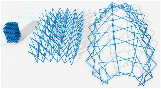 - Roovers, K.; De Temmerman, N. Deployable scissor grids consisting of translational units. Int. J. Solids Struct. 2017, 121, 45–61. [Google Scholar] [CrossRef]
