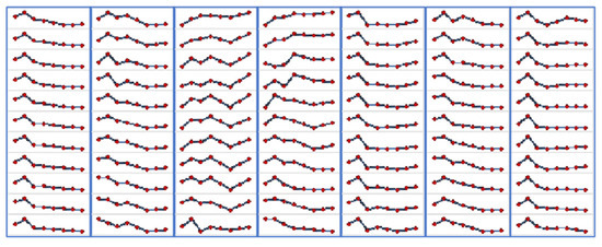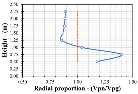 Another qualitative indicator of the presence of a characteristic vertical velocity profile is the consistency observed between the instantaneous profiles recorded during each measurement. As shown in Figure 3, higher velocities are predominant in position two [25]. Each profile column represents the profile’s evolution across ten samples (from top to bottom), representing a randomly selected sample (although the profiles on the left were recorded before those on the right).