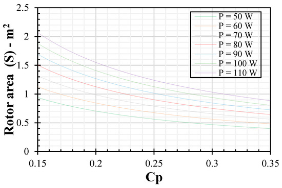 where = machine power (W), = effective wind power to the area projected by the rotor (W), = RPM, = rotor turning radius (m), = braking force (N), = air density (kg/m3), = area projected by the rotor (m2), and = wind velocity (m/s).