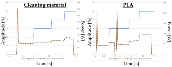 - 254.58 W/cm2 for the cleaning material at 50 W;