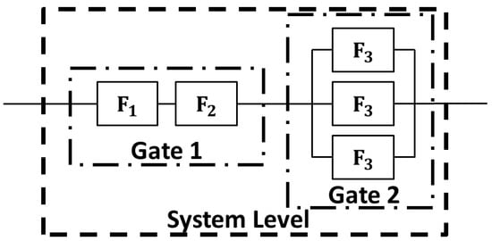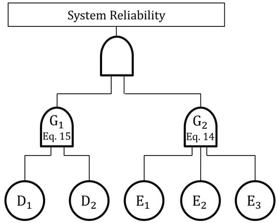 When there are complex interdependent relationships between events, the modified FTA such as [37] can be used, but using a Bayesian Network is another possibility. Bayesian networks model events as nodes. The nodes are connected by unidirectional arrows representing cause–effect relationships, and arcs between nodes represent conditional probabilities [40]. While Bayesian Networks are an effective modeling technique when there are many statistical interdependencies, in this paper, FTA is used as a simple, hierarchical model to represent the system-level reliability constraint.