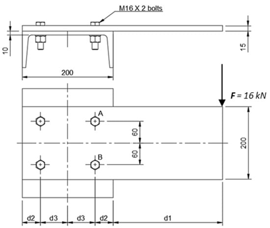 Note that event , which is defined in Equation (9), uses the failure equation of a single bolt to model the strength reliability of a group of A and B bolts displayed in Figure 2 of the bolted plate.