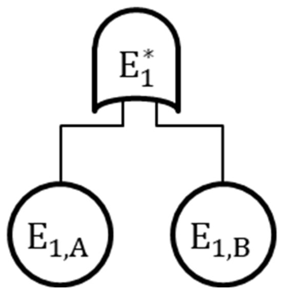 The system reliability of the parallel circuit configuration can be generated by FTA. The parallel circuit configuration is made of two cut sets, Gate 1 and Gate 2. Gate 1 is an “and” Gate, a union of two events, and . Its reliability can be mathematically represented by,