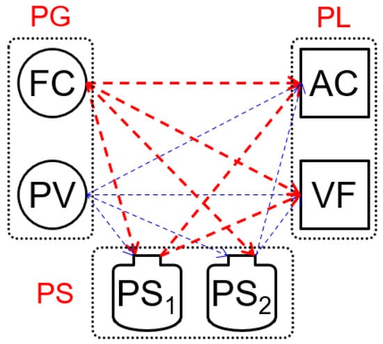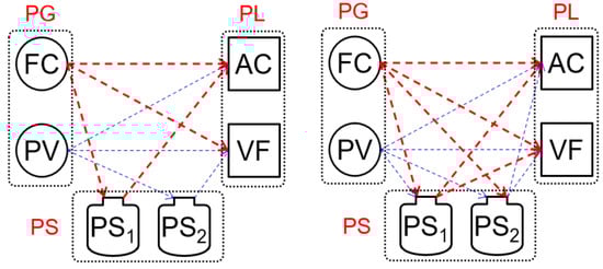 According to the arrangement analyzed, four cases are designed for logical connections to show different connectivity arrangements between power devices and energy management strategies:
