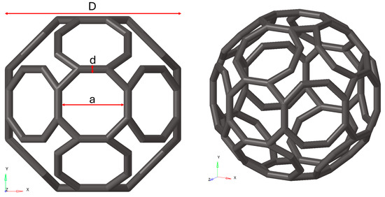 Here, d is the strut size and a defines the pore size useful to promote osteointegration [20]. The unit cell’s dimensions were defined through Equation (1), which relates the relative density ρ*/ρs to the ratio d/D.