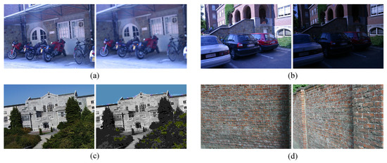 - Divide the input image into equally sized local tiles by partitioning the image into a uniform grid. The scale of each tile is . The tile size determines the scale of localized contrast enhancement. The feature points of transmission towers are relatively small. Thus, the region size should be set smaller to help highlight the object details, such as .