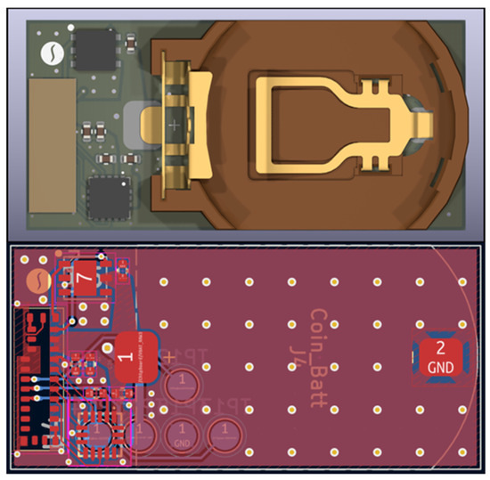 Figure 2 illustrates the system architecture used in the experiment. The system comprises the HY0020 [10] System-on-Chip (SoC), referred to as the IoT-Temp Node, for which a custom printed circuit board (PCB) was developed. This PCB includes a coin cell battery holder and integrates an external temperature sensor (Si7020-A20 [12]) for comparative analysis. A Wi-Fi gateway, based on a Raspberry Pi 4 [14], is positioned externally to the IoT-Temp Node and is responsible for forwarding the collected data to an IoT cloud platform [39].