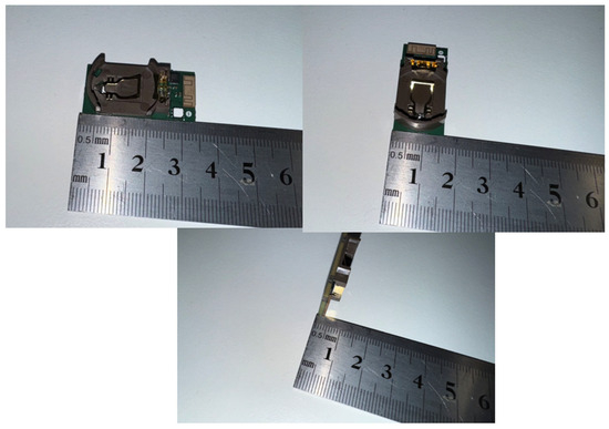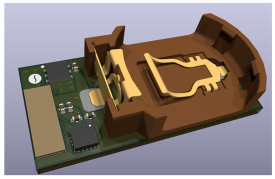 HY0020 [10] is an SoC developed by FDK Corporation [26], which is a Japanese company. A Nordic Semiconductor nRF52 series MCU resides within the HY0020. This MCU integrates an ARM Cortex-M4 processor with an FPU built in, thus allowing for clocking frequencies up to 64 MHz for an optimum performance-to-power tradeoff. BLE 5.0 connectivity is also available with a BLE antenna surrounding the chip: 512 kB flash memory, 64 kB RAM memory, and an operating voltage of 3.3 V [10]; it also has the dimensions 3.5 × 10 × 1 mm. Security hardware for BLE data encryption beyond the reach of ordinary users operates within the security domain of HY0020—with AES-128-bit data encryption being the specific algorithm. On the nRF52 microcontroller, energy-efficient operation is a key requisite, since it is targeted for battery-powered devices and has the following modes: