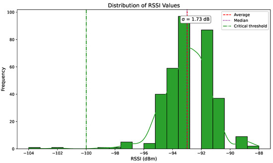 Of the 350 messages received, the RSI values showed a bell-shaped distribution in Figure 10, indicating stability.