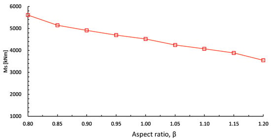 Effect of the aspect ratio on the normalized bending moment for a mono-bucket foundation with = 0 and .