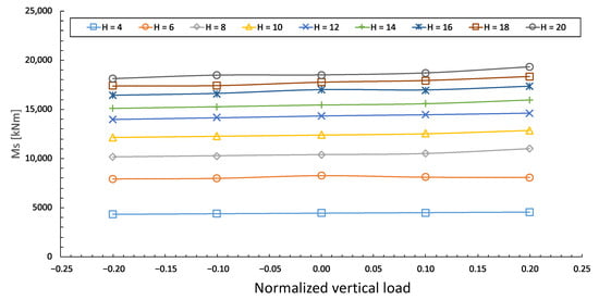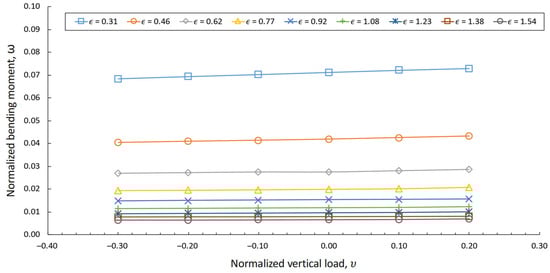 - Vertical Loads: While vertical loads minimally influence the bearing capacity within serviceability limits, compressive loads slightly reduce the normalized bending moments, particularly at low eccentricities.