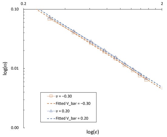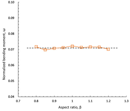 Figure 16 demonstrates the effect of the aspect ratio on the normalized bending moment for an MBF with = 0 and . It shows that the normalized bending moment was little affected as the shape of the MBF changed, which proves that consideration of the aspect ratio in the DCM is unnecessary. Figure 17 illustrates the effect of normalized vertical loads on the normalized bending moments for an MBF with . The normalized vertical load had little influence on the normalized permitted bending moment when the eccentricity was great. In contrast, the normalized vertical load affected the normalized permitted bending moment in the case of low eccentricity. A compressive load could decrease the normalized permitted bending moments. It was found that the soil could yield much more easily under a compressive load. The normalized permitted bending moments were similar to those when a great eccentric load was applied. The normalized permitted bending moments increased as the eccentricity ratio was reduced. Figure 18 illustrates the effect of eccentricity on the normalized permitted bending moments for an MBF with . The normalized permitted bending moment decreased with a greater eccentricity ratio. Figure 19 presents two almost-linear - curves in logarithmic space for an MBF with and , respectively. They appear to be linear in the dual logarithmic coordinate diagram. Thus, by best fitting the curves of shown in Figure 19, the generalized relationship can be expressed by