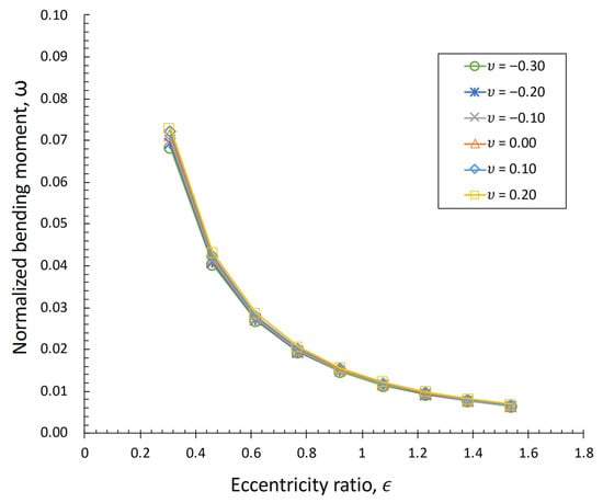 Effect of the eccentricity on the normalized bending moment for a mono-bucket foundation with .