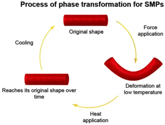 - Bhanushali, H.; Amrutkar, S.; Mestry, S.; Mhaske, S.T. Shape Memory Polymer Nanocomposite: A Review on Structure–Property Relationship. Polym. Bull. 2022, 79, 3437–3493. [Google Scholar] [CrossRef]