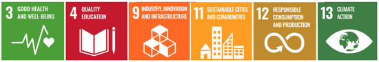 As 4D printing progresses, increased attention is being given to the development of bio-based, recyclable, and energy-efficient materials to ensure alignment with broader sustainability goals. The integration of 4D printing with bio-based and stimuli-responsive materials supports a broad spectrum of Sustainable Development Goals (SDGs) through its transformative impact on design, production, and application. As a driver of advanced manufacturing, 4D printing aligns with SDG 9 by fostering innovation and enabling resilient infrastructure. Its emphasis on recyclable and energy-efficient materials directly supports SDG 12, while the reduction in energy use and material waste contributes to SDG 13 and broader climate action efforts. In biomedical contexts, personalized and minimally invasive 4D-printed devices advance SDG 3, promoting health and well-being. Smart materials used in responsive architectural systems enhance urban adaptability, resonating with SDG 11, and the incorporation of these technologies into design education encourages interdisciplinary competence and innovation, contributing to SDG 4 [75]. These alignments underscore the systemic value of 4D printing in advancing sustainable development across sectors. Figure 3 depicts the relevant SDGs.