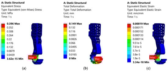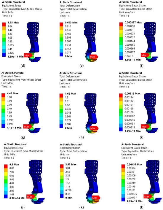 19], a total deformation below 1 mm indicates a structure that is too stiff, offering little to no shock absorption. In other words, the model does not compress or yield under pressure the way a natural dog paw would, potentially resulting in discomfort or long-term stress on the limb. A deformation between 1 and 2 mm is considered acceptable, suggesting moderate cushioning. A value between 2 and 3 mm is ideal—it means the prosthetic footpad mimics the compression behavior of a real paw, offering a balance between support and shock absorption. This biomechanical realism becomes even more important in dynamic activities like walking or running, where effective shock absorption helps prevent stress-related injuries and improves gait comfort. On the other end of the spectrum, deformation values exceeding 3 mm suggest excessive softness. In such cases, the prosthetic may lack the mechanical stability needed to properly support the animal’s weight, which could lead to instability or premature failure. As illustrated in
