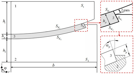 A simplified geometry of the antifriction interlayer is considered, excluding the lubricant hole. The problem is analyzed in an axisymmetric formulation using the finite element method in ANSYS Mechanical APDL 2021R2 (Livermore, CA, USA).