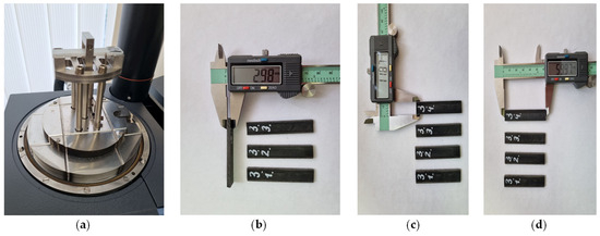 Experiment on DMA: (a) three-point bend; (b–d) samples.