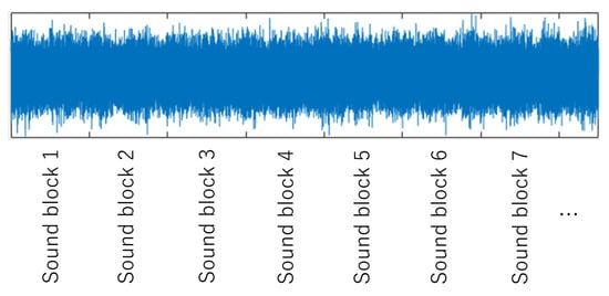 Sound blocks extracted from WAV files are used for training neural network models. Figure 4 shows an example of extraction of time-series sound block (SB) data from a WAV file, which is recorded from a general milling machine. In this experiment, SB data are sampled with 0.005 [s], so that the length of an SB data file is 44,100 × 0.005 = 220. According to the length, the number of input layer’s neurons is designed as 220. Also, in this case, the number of SB data extracted from a WAV file becomes 2000, whose 80%, 10%, and 10% are assigned for training, validation, and test, respectively. Details, including labels, are tabulated in Table 1. It has been empirically confirmed that it is important to determine the length of SB data used for training and testing. Note that the size of the dataset, the organization for training, validation and testing, and the length of one SB data were empirically determined in this case. It seems to be required to reconsider those values if conditions, including target materials, cutting tools, and machine tools, are changed.