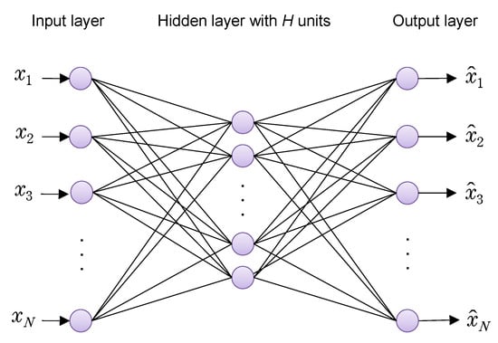 where is the ith row data in the weight matrix , and is the jth training data. Note that in Equation (1) is the desired value of , to which 0.05 is set. As can be seen, the loss function to train the autoencoder is composed of the first term about MSE, the second term about L2 regularization, and third term about sparse regularization based on KLD.