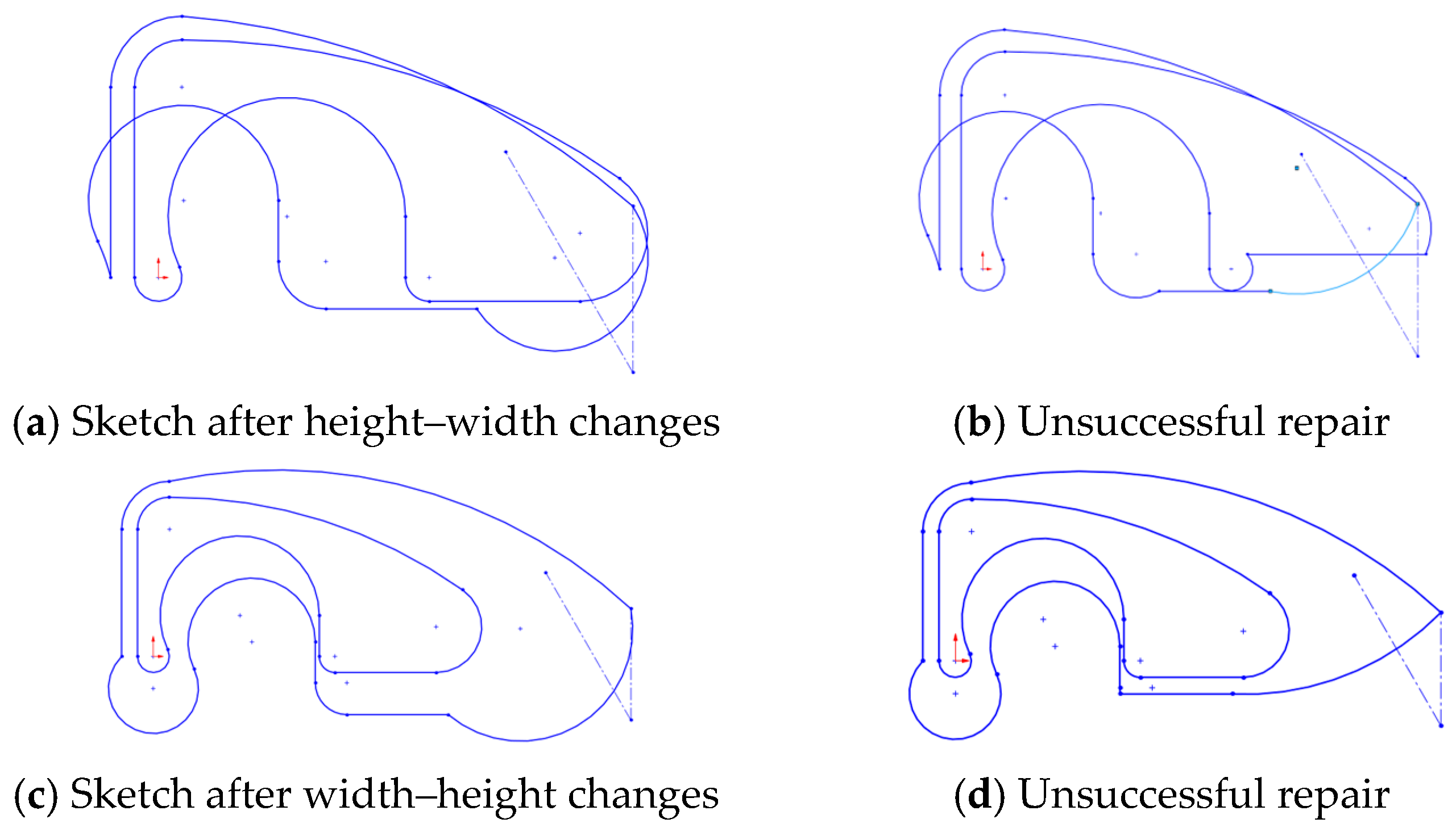 - Both sequences resulted in uncontrolled deformation (Figure 4b,d), producing twists in the sketch.