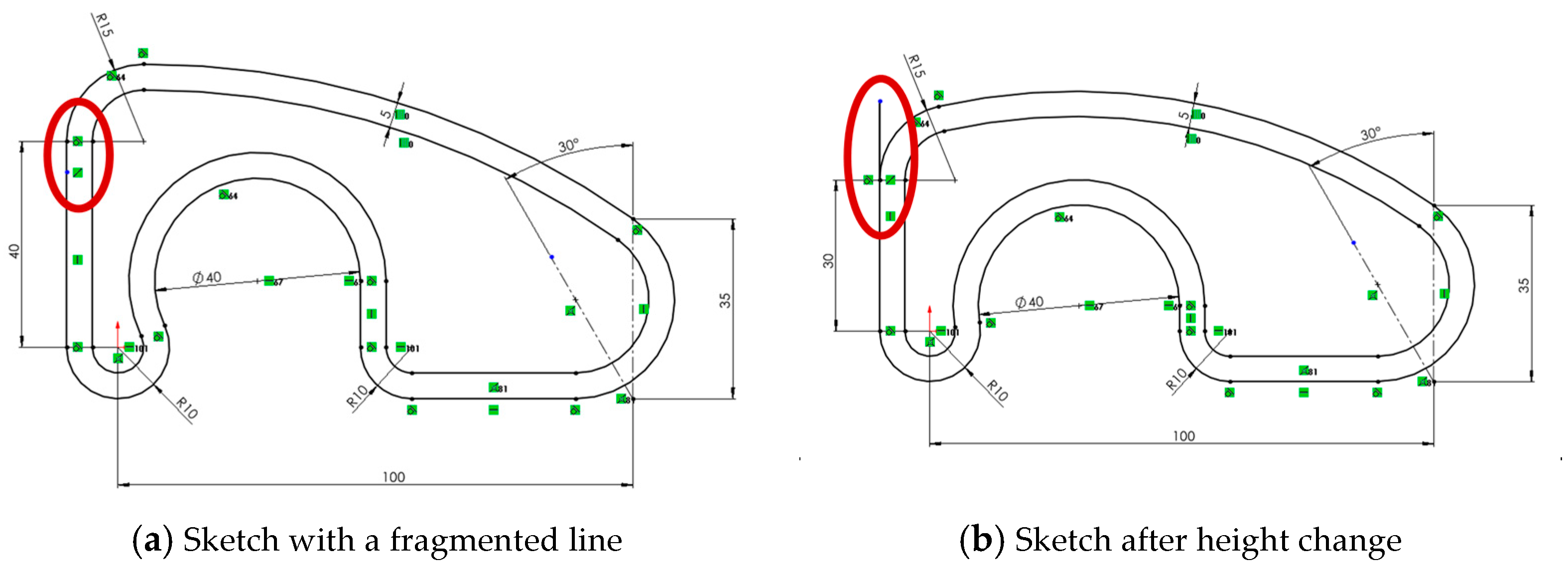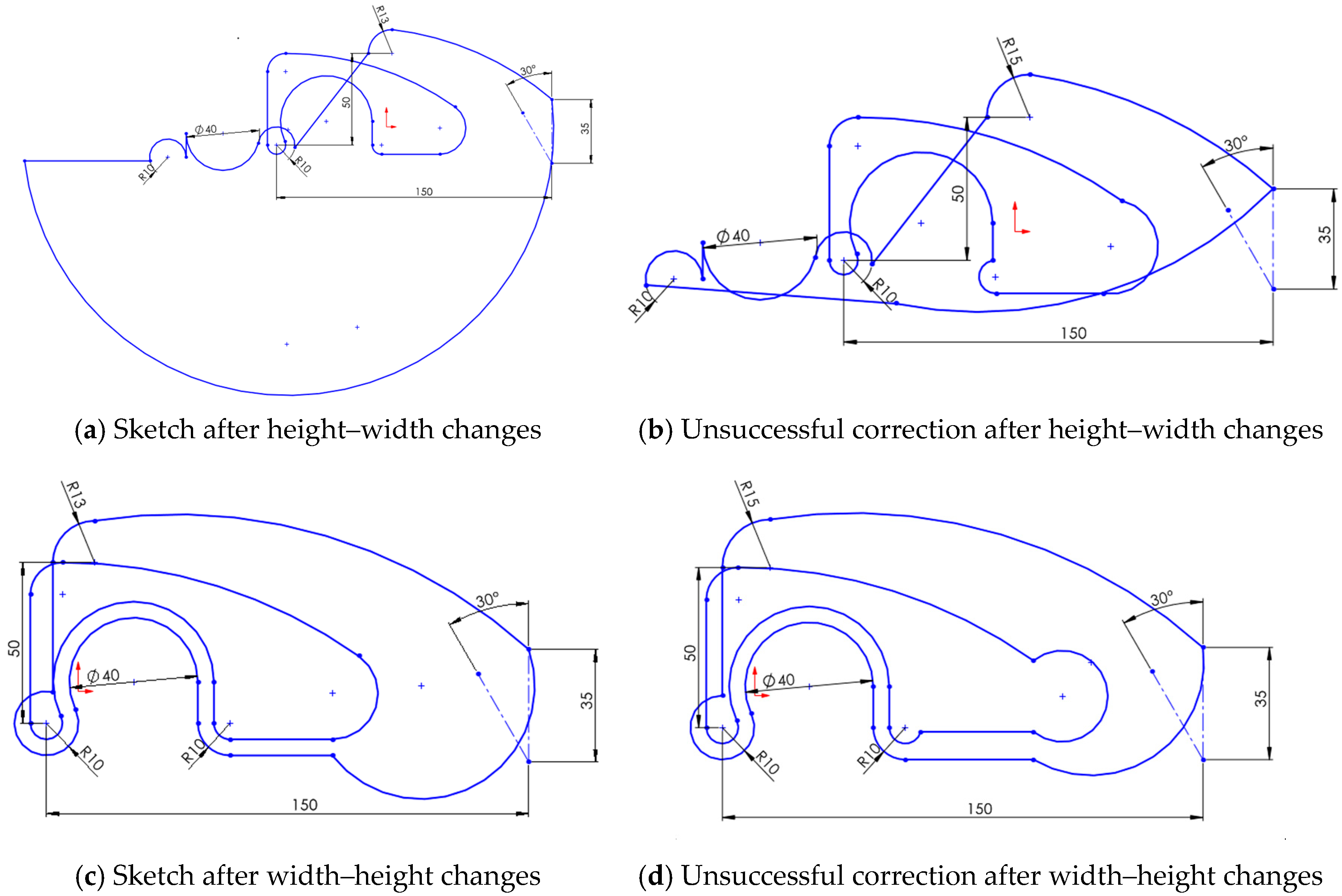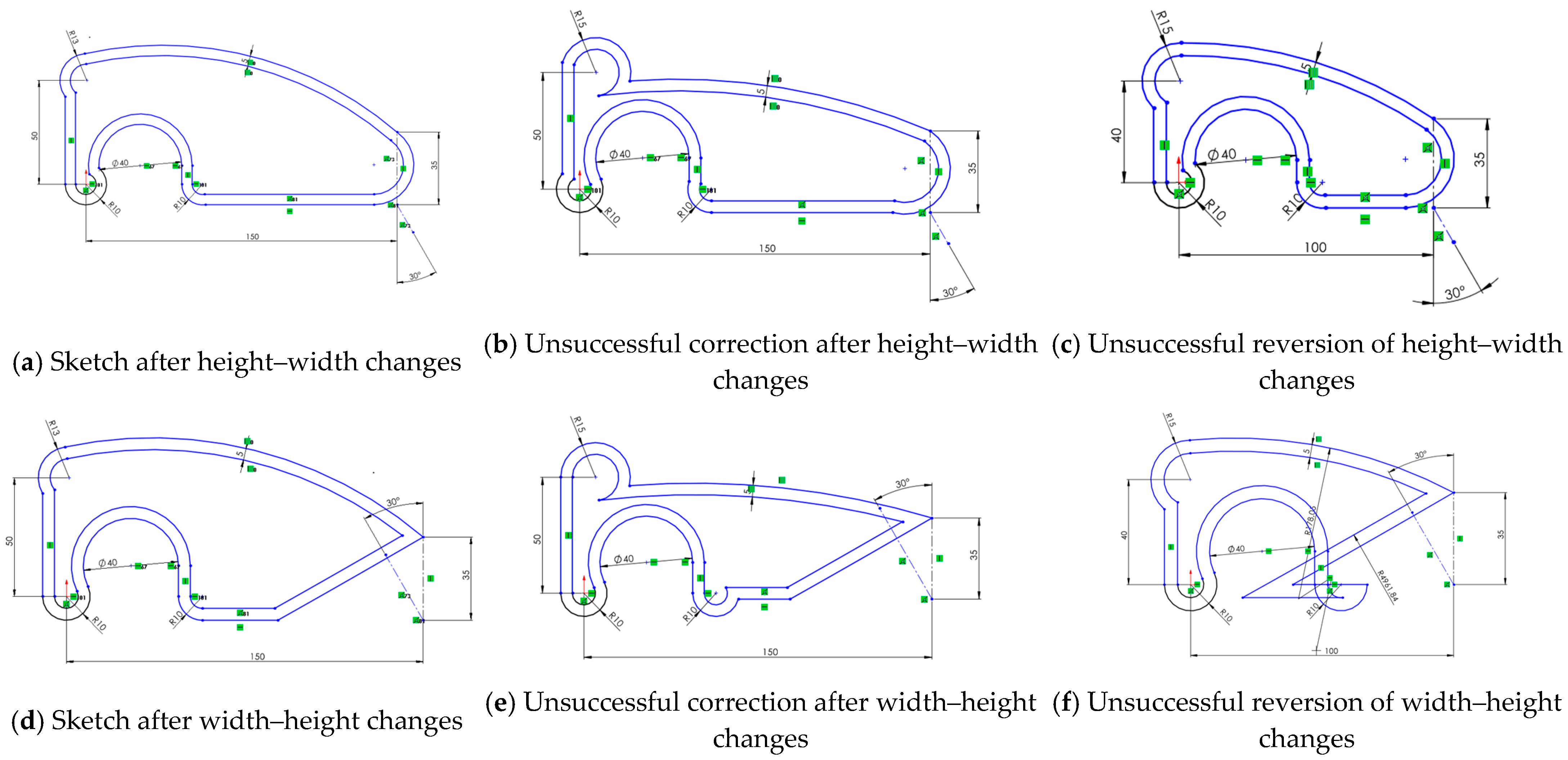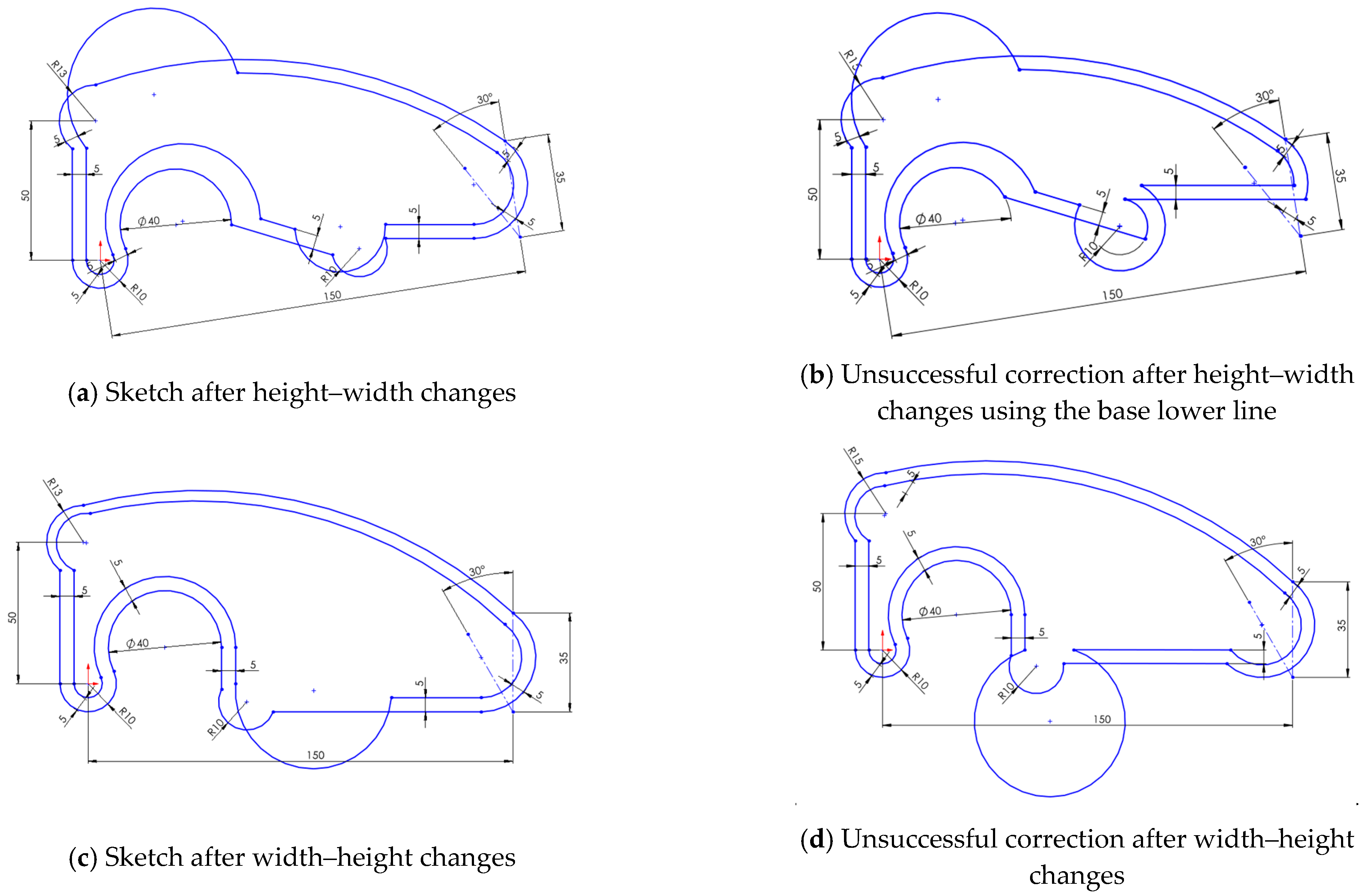- Reversibility is not guaranteed, even when the deformation appears minor. Once a sketch with inconsistent geometry is edited, recovering the original shape is often impossible without full reconstruction. In most cases, manual corrections add time, increase user frustration, and reduce confidence in the model’s robustness.