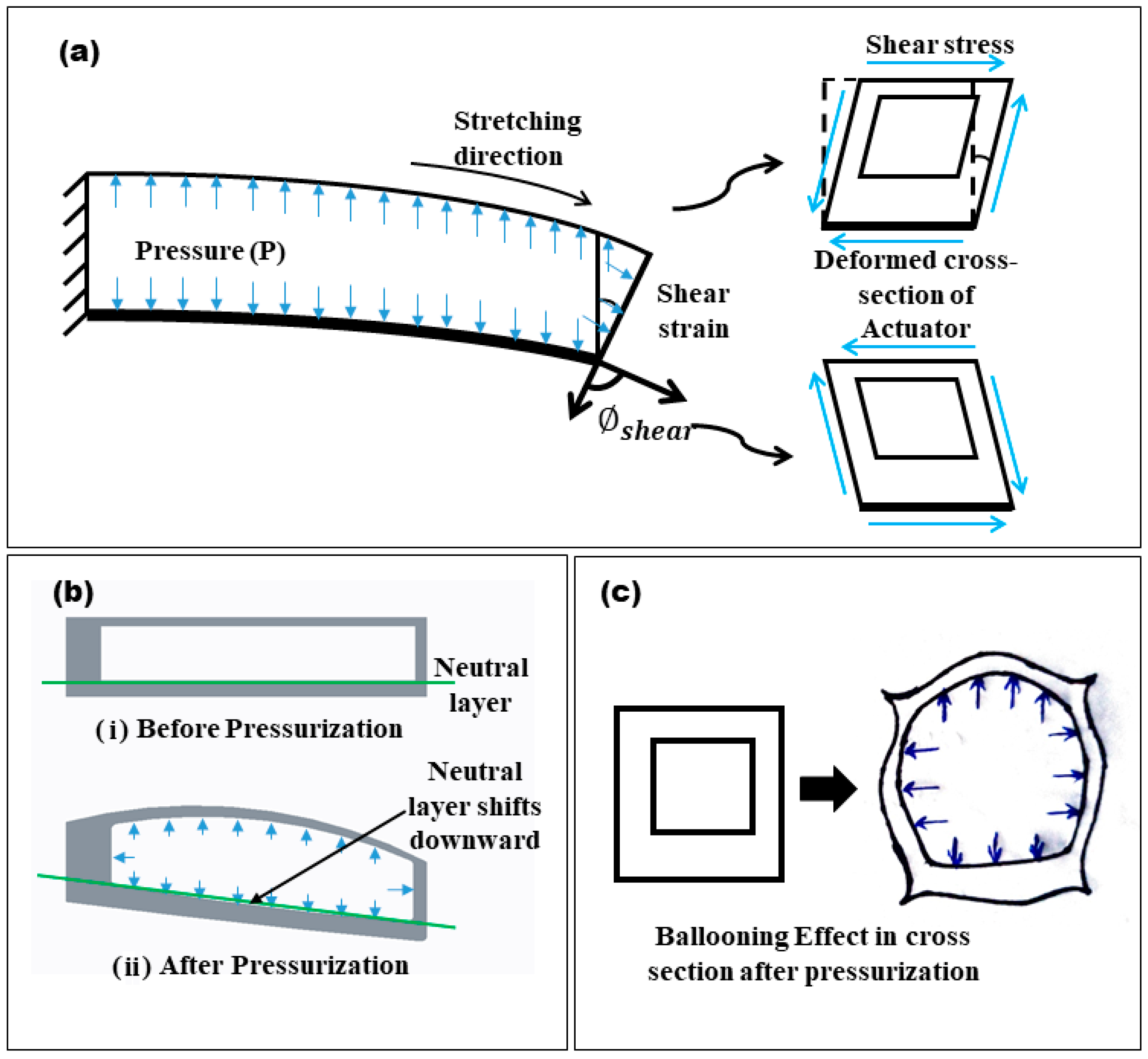 - Marchetti, G.; Tawk, C.D.; Zolfagharian, A.; Pinskier, J.; Howard, D.; Young, T. Timoshenko-Beam-Based Modeling of Soft Pneumatic Actuators. IEEE Robot. Autom. Lett. 2021, 6, 4027–4034. [Google Scholar]