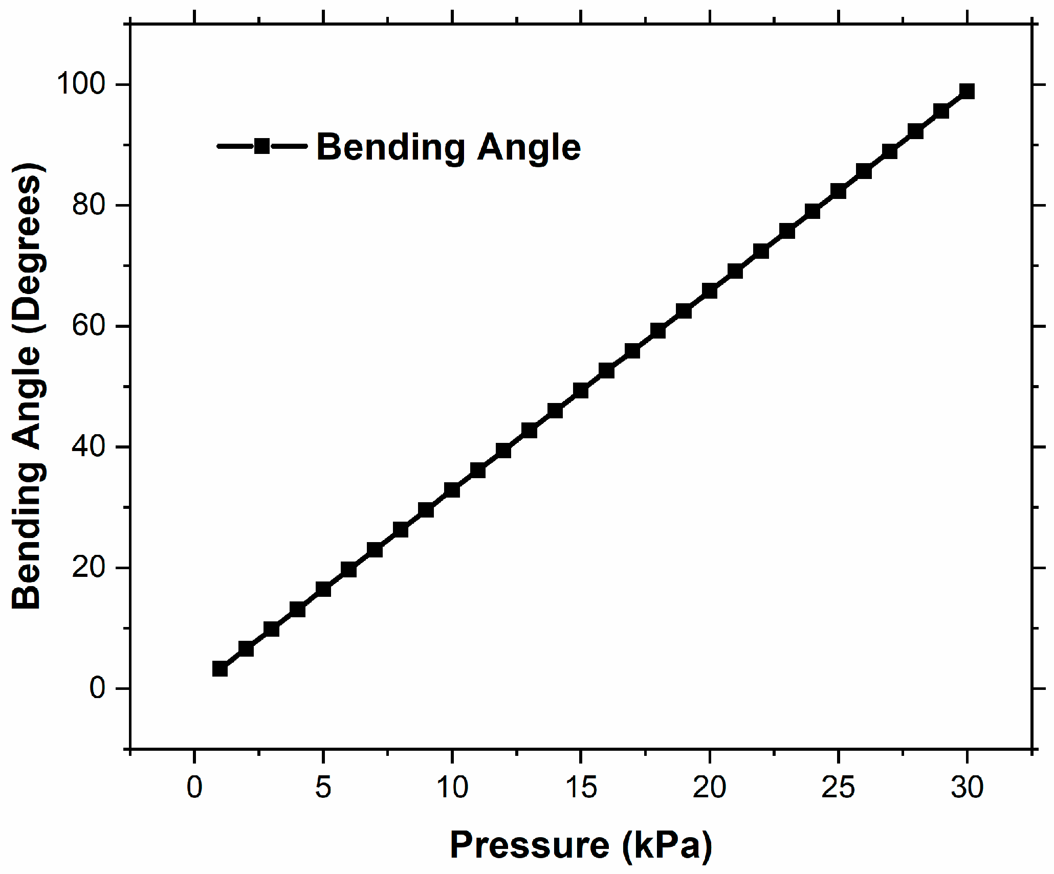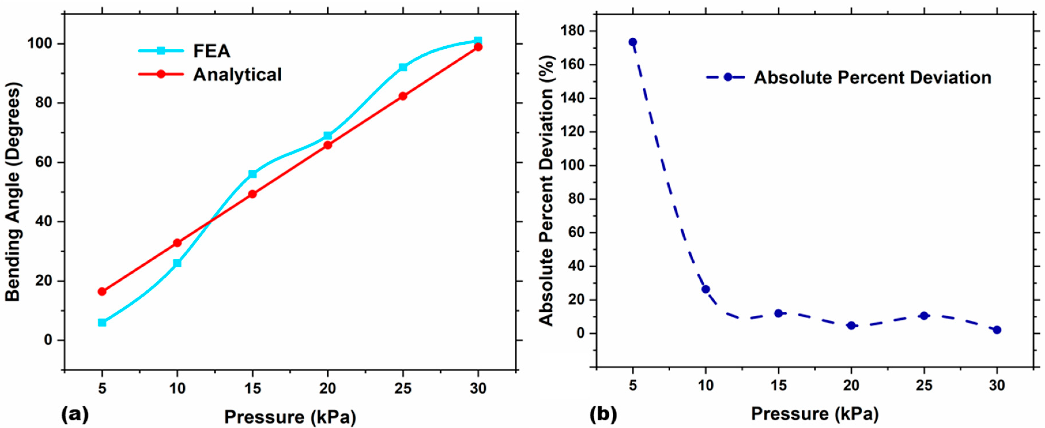 | S. No. | Pressure (kPa) | Bending Angle (Degrees) | Absolute Percentage Deviation (%) | |