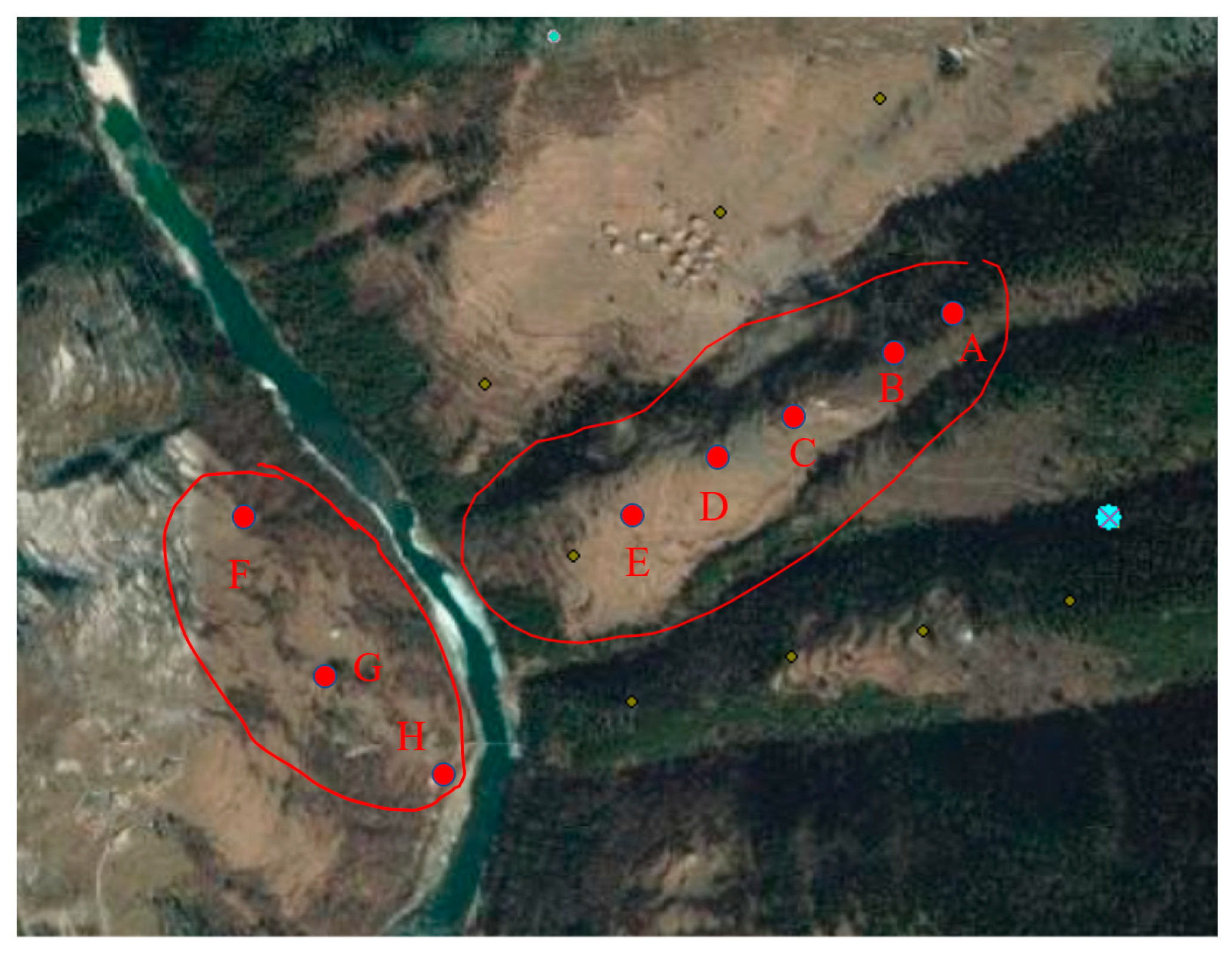 The core research area of the slope is located on the left bank of the Balaxia Hydropower Station reservoir, 2.2 km away from the dam in a straight line. It is situated on a thin ridge slope between Shanshugou (upstream) and Geduigou (downstream), with a typical terrain feature of “surrounded by gullies on both sides and facing the river at the front”. The sensitive objects and hydraulic structures within the area include: the main project of the downstream dam, the reservoir bank slope protection structure, and the residential areas on both sides of the Deformation Body Road.