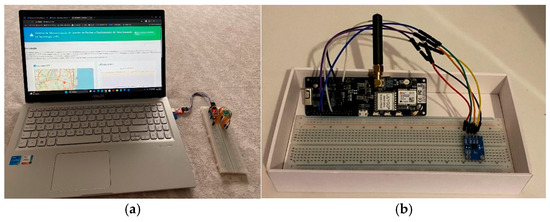 According to Table 6, considering the system’s maximum nominal consumption, the battery duration would be (2600 mAh)/(159.372 mA) ≈ 16.3 h. However, this calculation represents the worst-case scenario, as it assumes continuous operation and does not account for the intermittent nature of LoRa transmissions. The system operates in active and sleep cycles, which allows for a significant reduction in average power consumption. By using low-power mode (deep sleep) and turning off components when not in use, power consumption can be significantly reduced. Knowing that in deep sleep mode the ESP32 consumes 10 µA and the LoRa transmitter consumes 0.2 µA, and that we can turn off the motion sensor when not in use, the new battery duration would be approximately 13.5 years. It is important to note that in practice, batteries have self-discharge and losses, so the actual duration will be shorter.