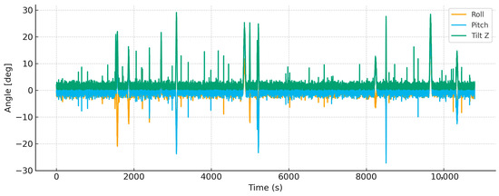 - Pedley, M. Tilt Sensing Using a Three-Axis Accelerometer; Freescale Application Note AN3461, Rev. 6; Freescale Semiconductor, Inc.: Austin, TX, USA, 2007; Available online: https://www.nxp.com/docs/en/application-note/AN3461.pdf (accessed on 28 October 2025).