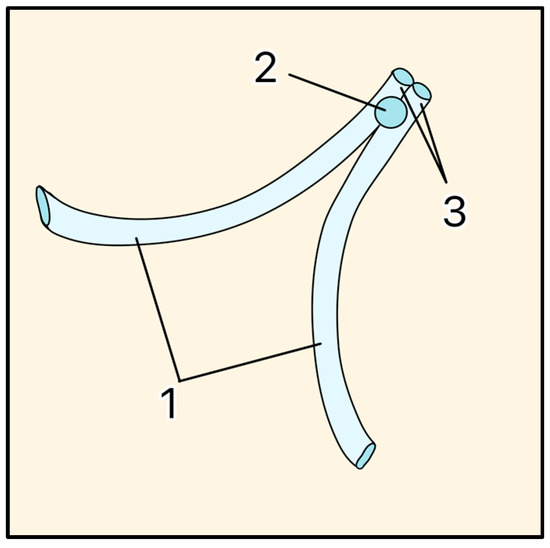 EyePass Device. 1 = Drainage tubes, 2 = Anchor, 3 = Collecting stem. Adapted from [37].