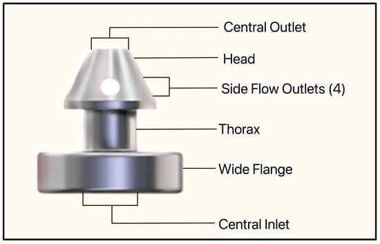 The original valve design was based on a venturi-style, unidirectional flow system. The valve was made of two thin, flexible, silicone membranes that responded to pressure differentials to open at 8 mmHg and close at 12–13 mmHg (Figure 11). Two medical-grade silicone leaflets (8 × 7 mm) mounted in a polypropylene housing form a tapered, venturi-style chamber. The silicone drainage tube (25.4 mm × 0.305/0.635 mm ID/OD) feeds the chamber, and the flexible silicone plate (FP7: 184 mm2; FP8: 102 mm2) provides the diffusion surface for AH outflow (Figure 12).