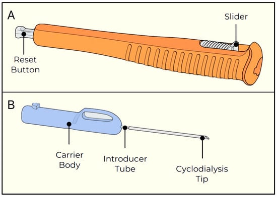- Kammer, J.A.; Mundy, K.M. Suprachoroidal devices in glaucoma surgery. Middle East Afr. J. Ophthalmol. 2015, 22, 45–52. [Google Scholar] [CrossRef] [PubMed]