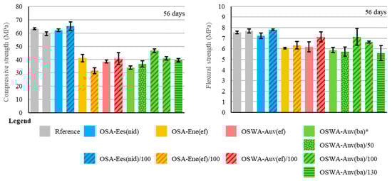 - The compressive and flexural strength of the concrete formulation containing OSA-Ees(nid) was approximately the same as found in the reference formulation, amounting to ~60 and ~7 MPa at 56 days, respectively.