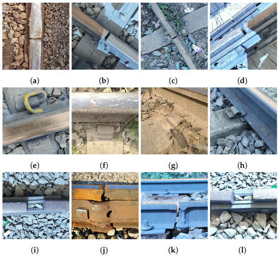 Figure 1 provides representative examples from the dataset, illustrating diverse fault types such as rail fractures (