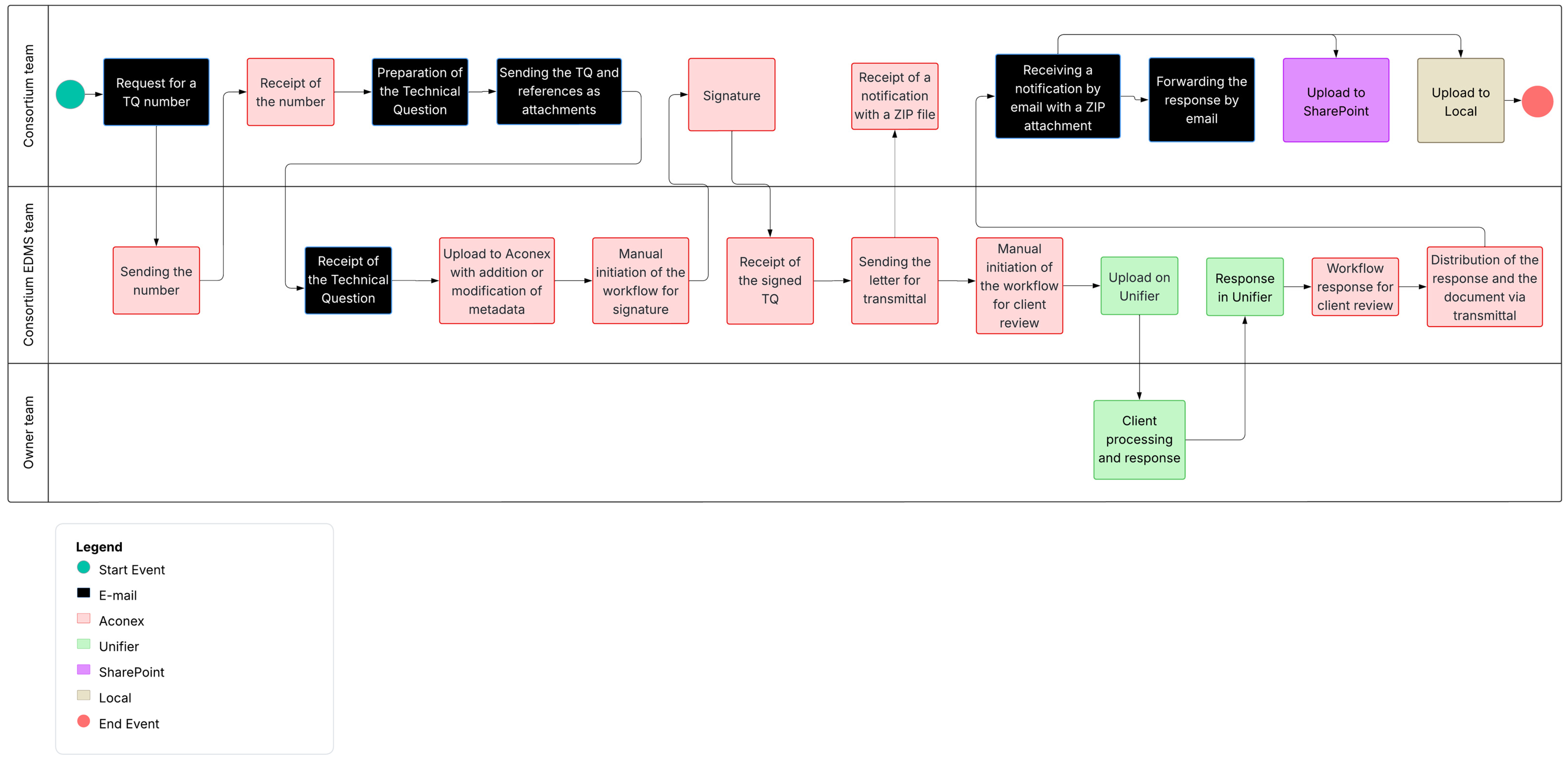 - Initially, there was confusion regarding the platform to use for creating TQs, due to the historical use of Aconex for formal document exchanges.