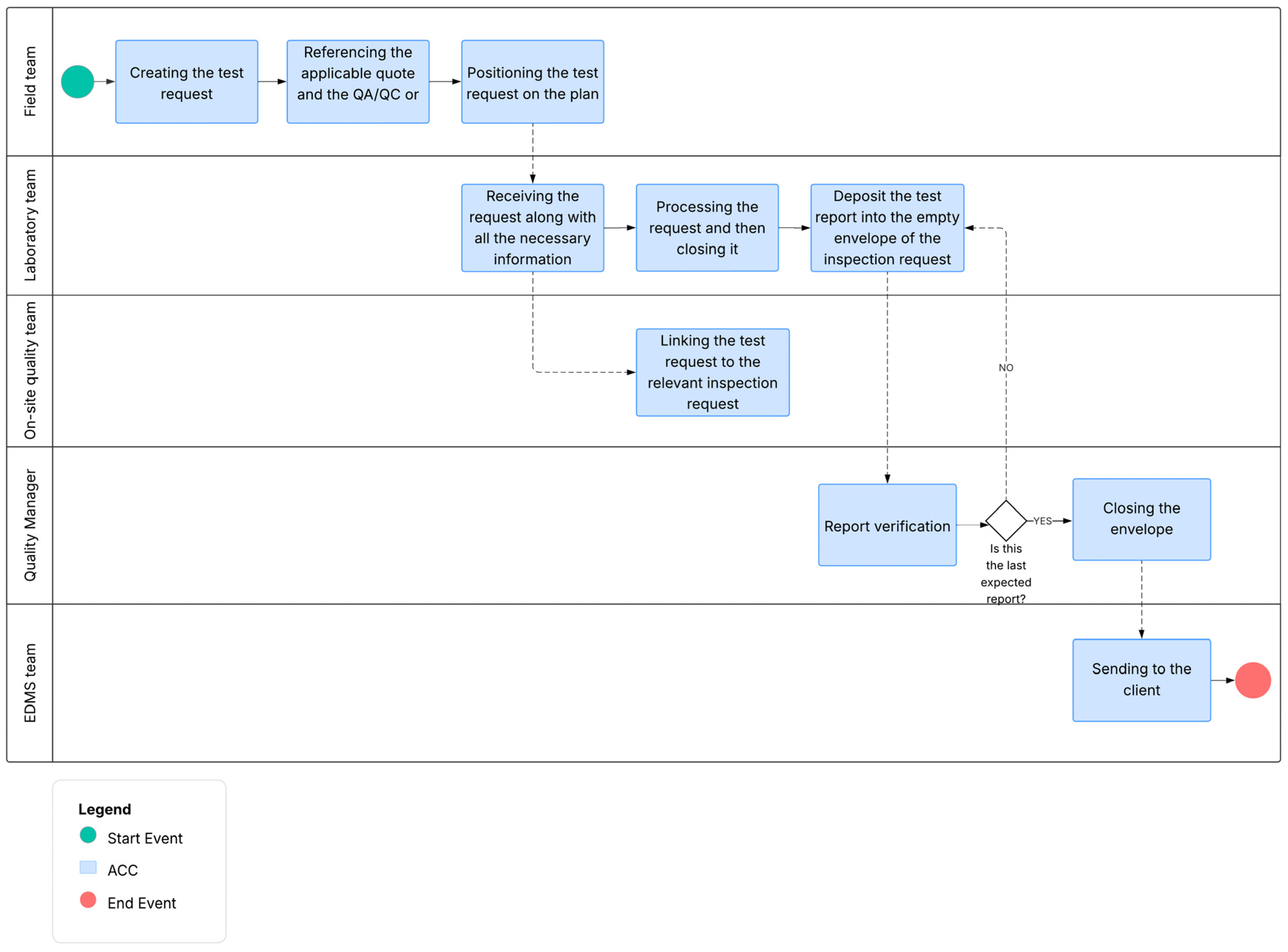 - Presentations and validation exchanges: At the conclusion of the initial developments, presentation sessions were organized with the concerned teams, particularly quality and document management, the key decision-makers for the processes. These exchanges aimed to present the proposed operating logic, confront the scenarios with the reality of practices on-site, and gather targeted feedback, critiques, and adjustments before the test in real conditions. Since Document Management was responsible for Aconex, these exchanges allowed for a better understanding of the interface between ACC and Aconex to optimize the information exchange.