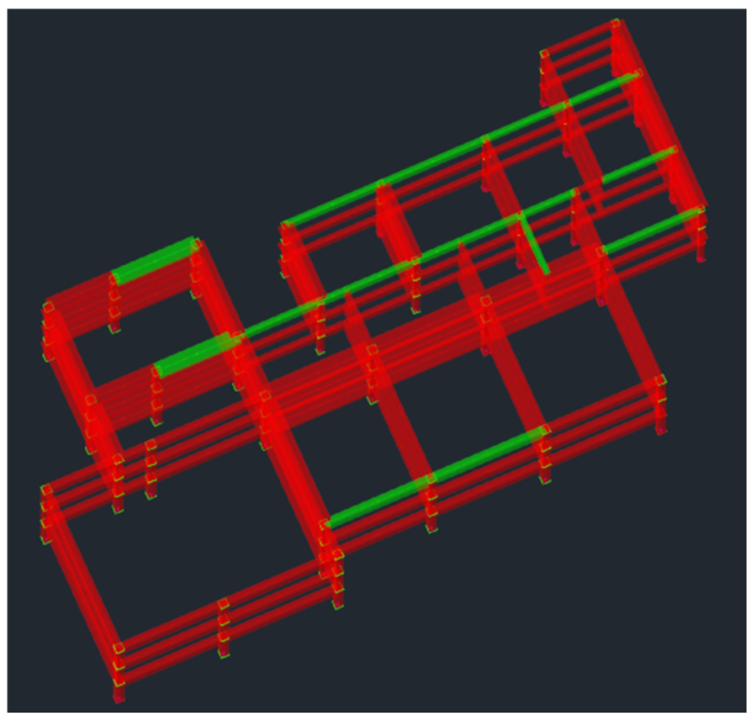 Connections between the steel exoskeletons and existing reinforced concrete structure were designed as rigid links positioned at beam–column joint locations. These connections transfer both axial and flexural forces from the existing frame to the exoskeleton system, creating a composite structural response under lateral loading conditions. The connection design employed steel plates welded to exoskeleton members and anchored to the existing concrete frame through post-installed mechanical anchors.