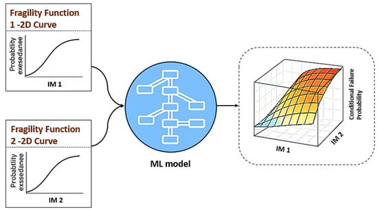 Schematic illustration of the EQ–TS-based ML framework for synthesizing two 2D fragility functions (earthquake and fire) into a multi-hazard fragility surface for fire-following-earthquake scenarios (after []).