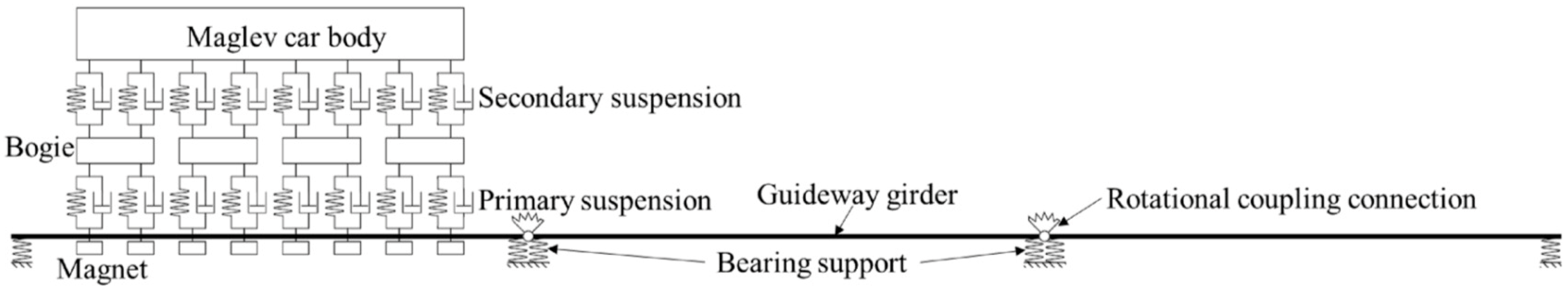 - Dai, J.; Lim, J.G.Y.; Ang, K.K. Dynamic Response Analysis of High-Speed Maglev-Guideway System. J. Vib. Eng. Technol. 2023, 11, 2647–2658. [Google Scholar] [CrossRef]