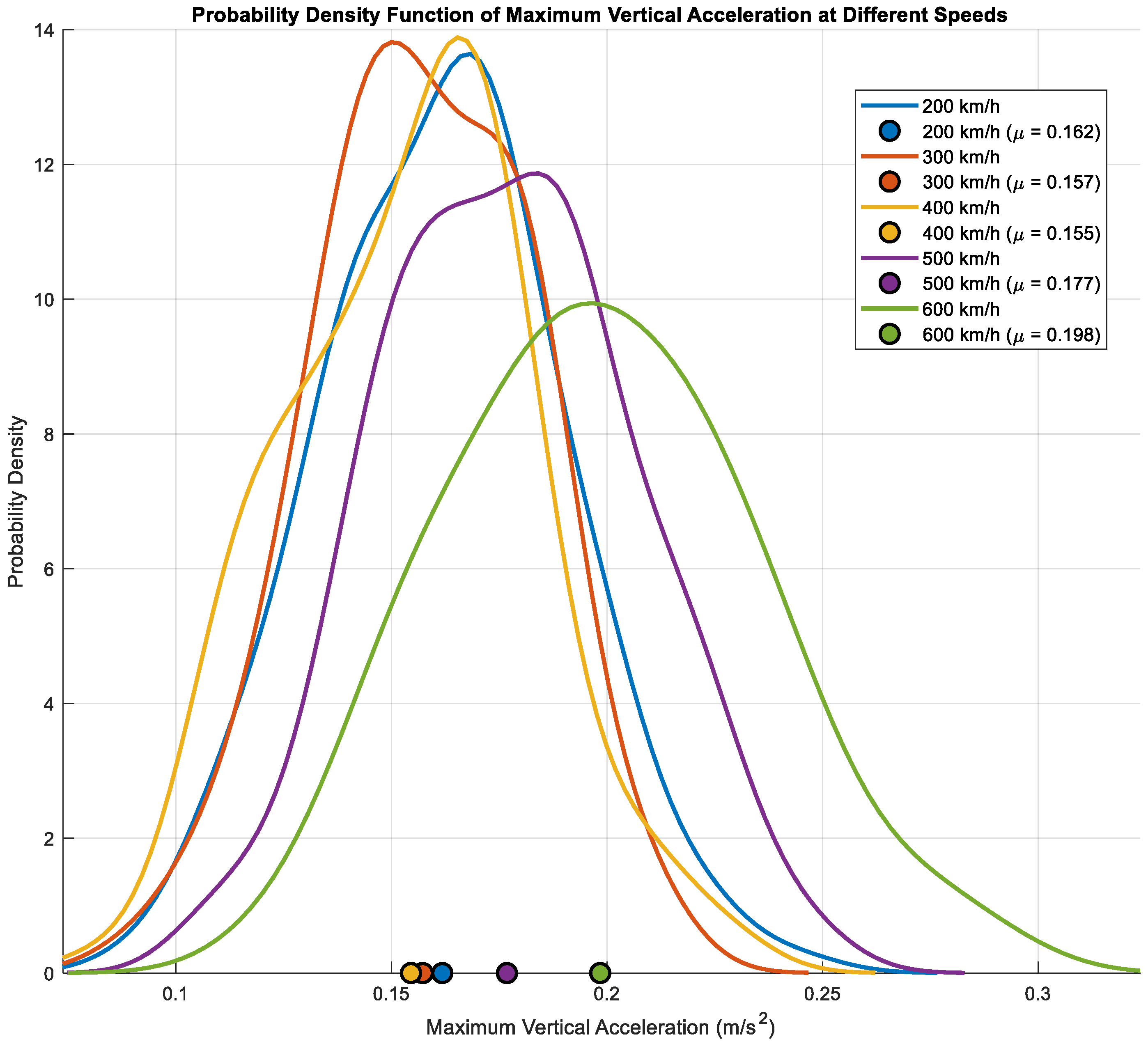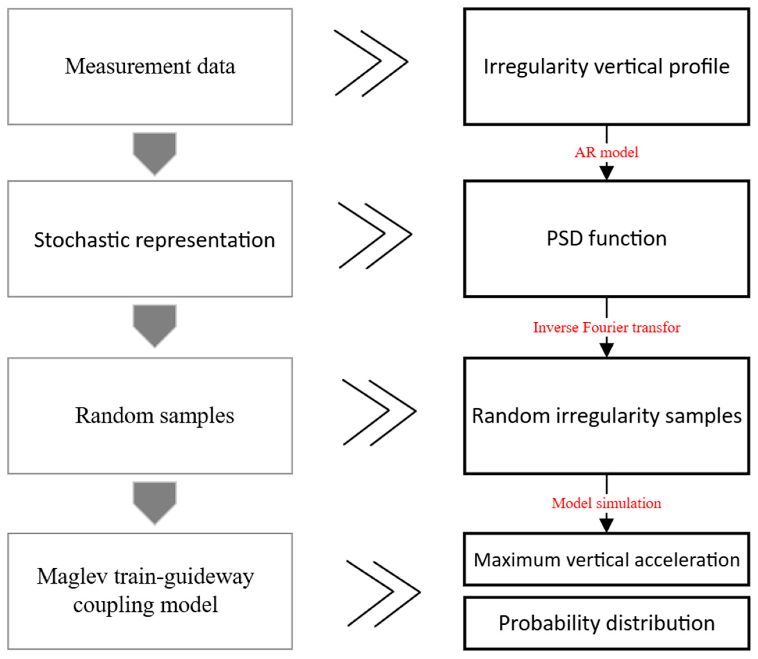 - Wang, W.; Song, Y.; Xu, J.; Xu, Z.; Liu, Z. Track Irregularity Prediction and Effect on the Dynamic Response of the 600 km/h Maglev System. IEEE Trans. Veh. Technol. 2025. [Google Scholar] [CrossRef]