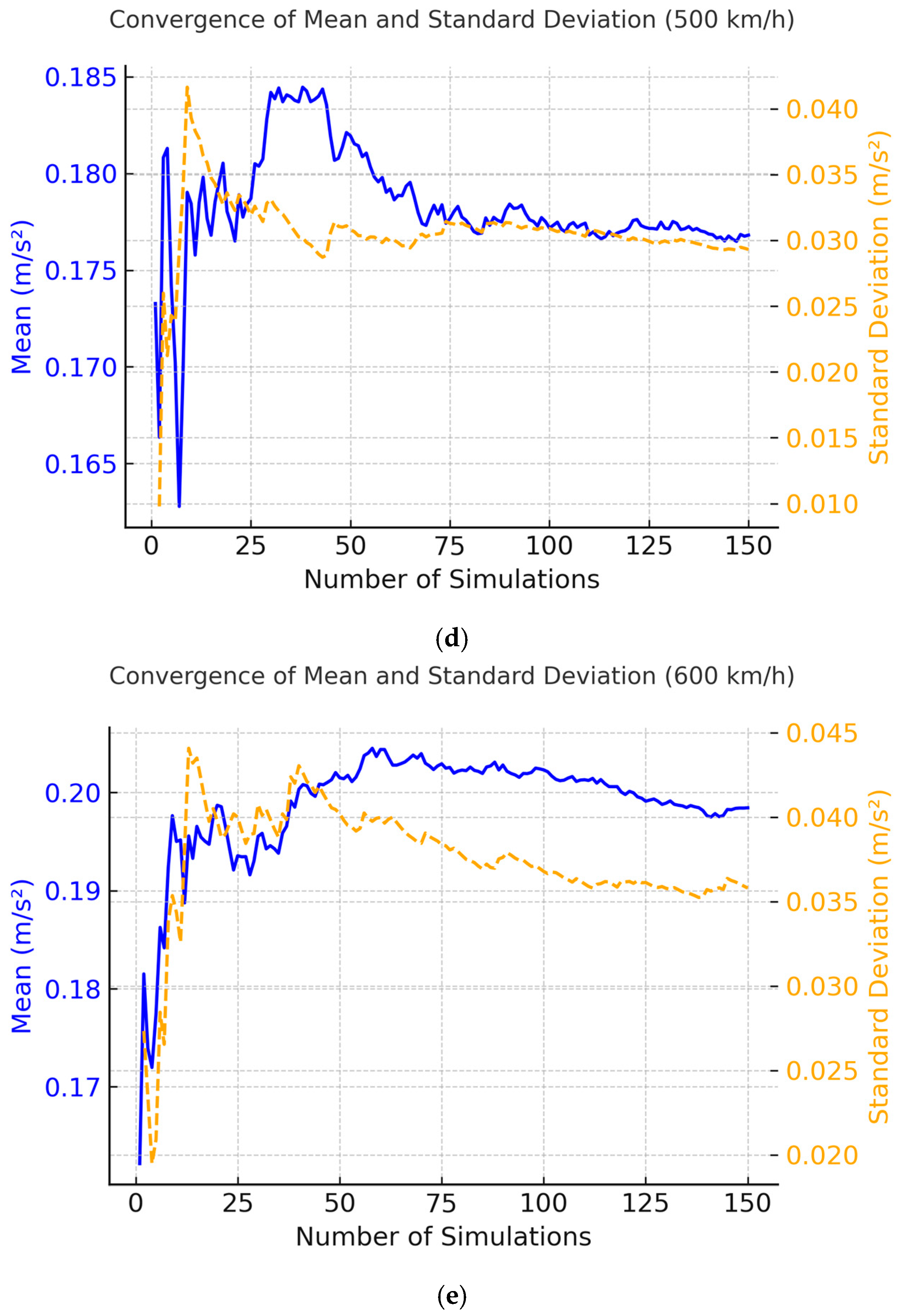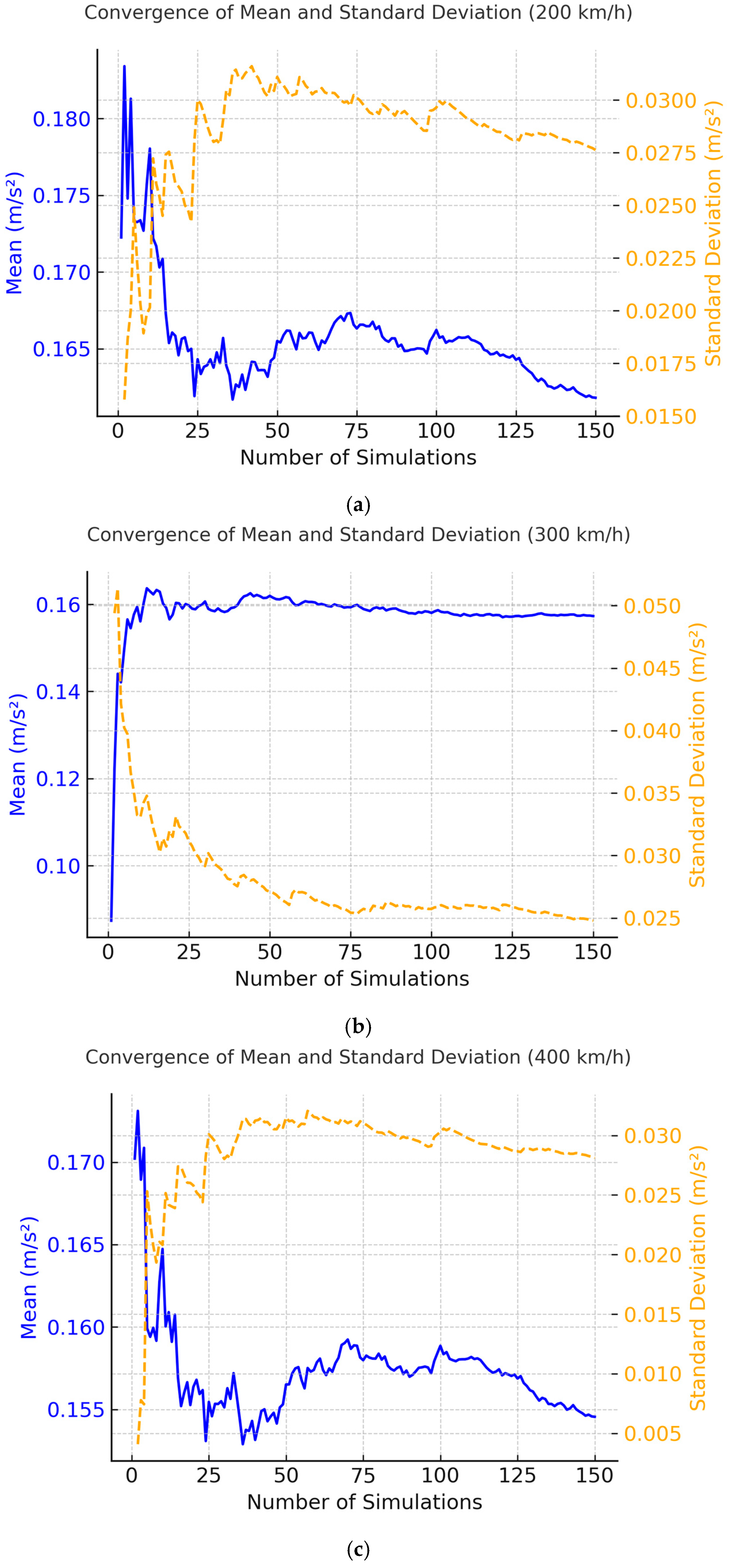 - Wang, W.; Wang, B.; Ma, L.; Deng, G.; Xue, S. Transverse vibration of high-speed maglev train under dual stochastic excitations of crosswinds and maglev track irregularities. J. Wind. Eng. Ind. Aerodyn. 2025, 261, 106094. [Google Scholar] [CrossRef]
