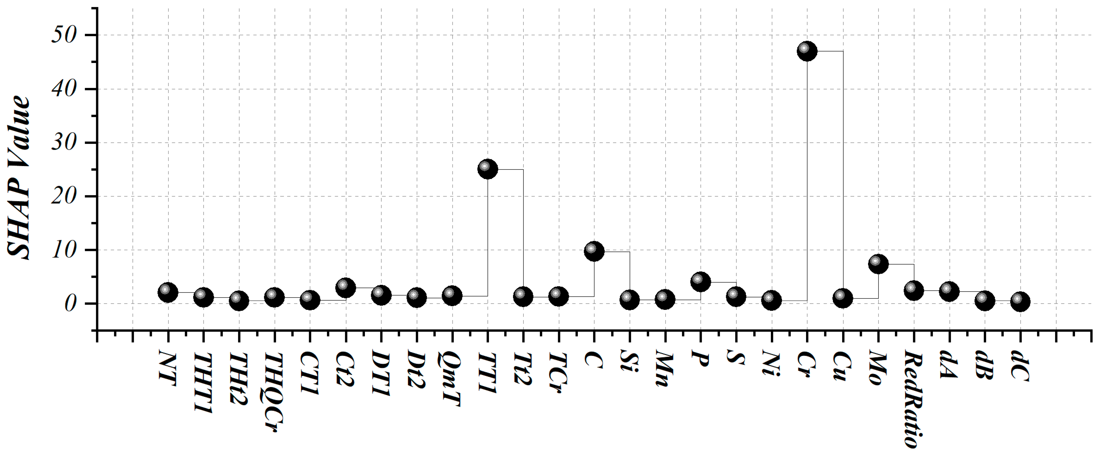 SHAP was selected for this study because of its model-agnostic and additive properties, which make it especially suitable for tree-based ensemble learners such as HGB and CAT. Its ability to quantify each feature’s marginal contribution with exact additivity ensures consistent, physically interpretable explanations that bridge data-driven predictions with metallurgical understanding.