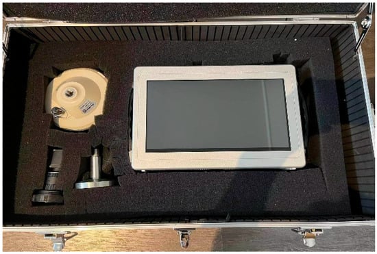The collection platform serves as the central control and operating platform for the automated inspection equipment (as shown in Figure 4). It integrates a positioning data processing module, a power module, a display, and an embedded core processing platform, equipped with a large capacity to achieve large-scale storage of 4K image data. The device’s housing is modified with connection ports to enable efficient connectivity. The display supports touch screen operations, and the operating software on the display includes interfaces for algorithm parameter loading and configuration, algorithm packaging and invocation, result presentation, image list display, and processing progress display. It supports operations for road distress detection on large panel displays, effectively enhancing the efficiency of management personnel.