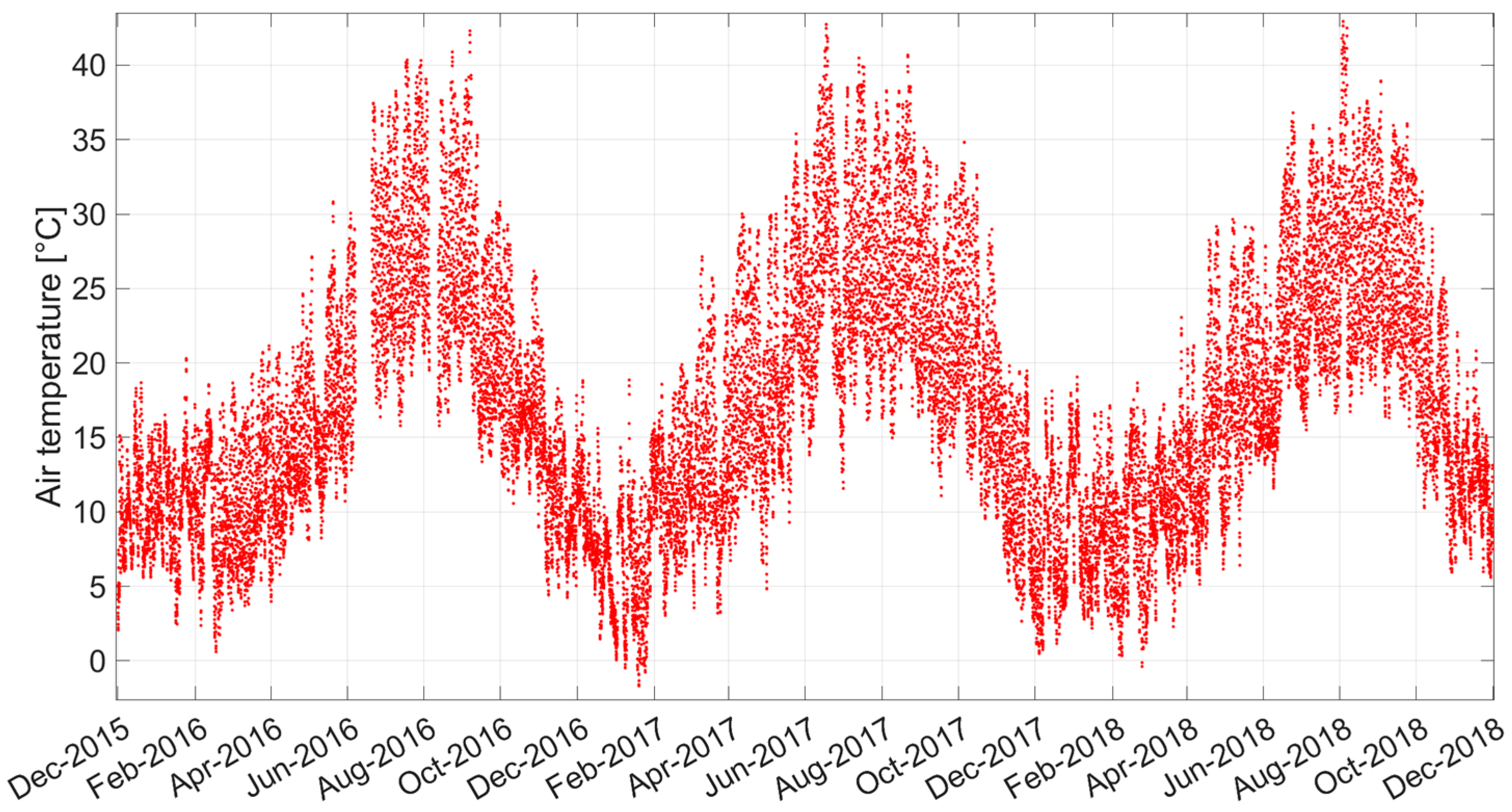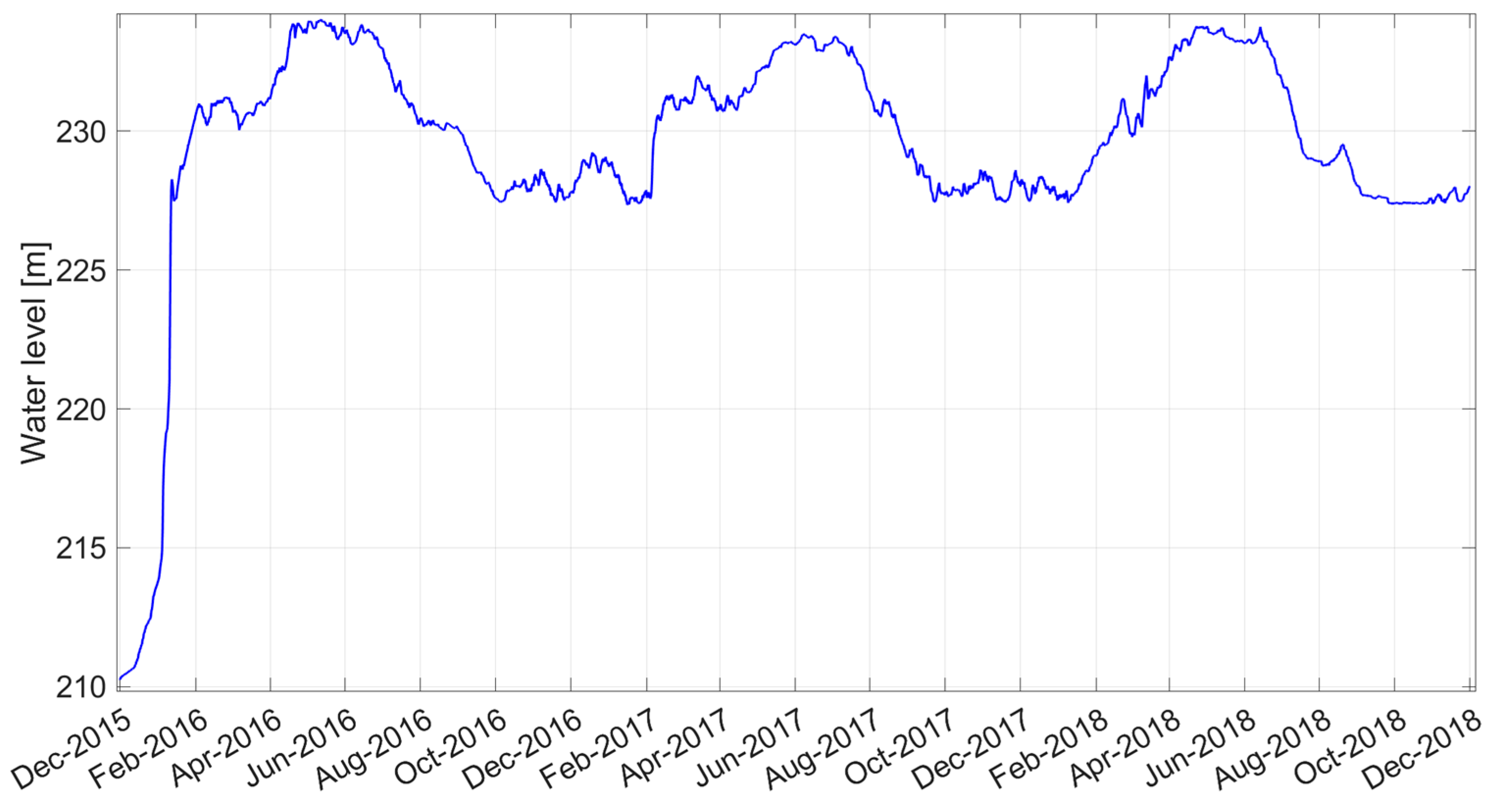 - Sejas, A.; Pereira, S.; Mata, J.; Cunha, Á. Dynamic behaviour of a concrete dam: Development of statistical and machine learning models for interpretation of monitoring data. In Proceedings of the Fifth International Dam World Conference, Lisbon, Portugal, 13–17 April 2025. [Google Scholar]