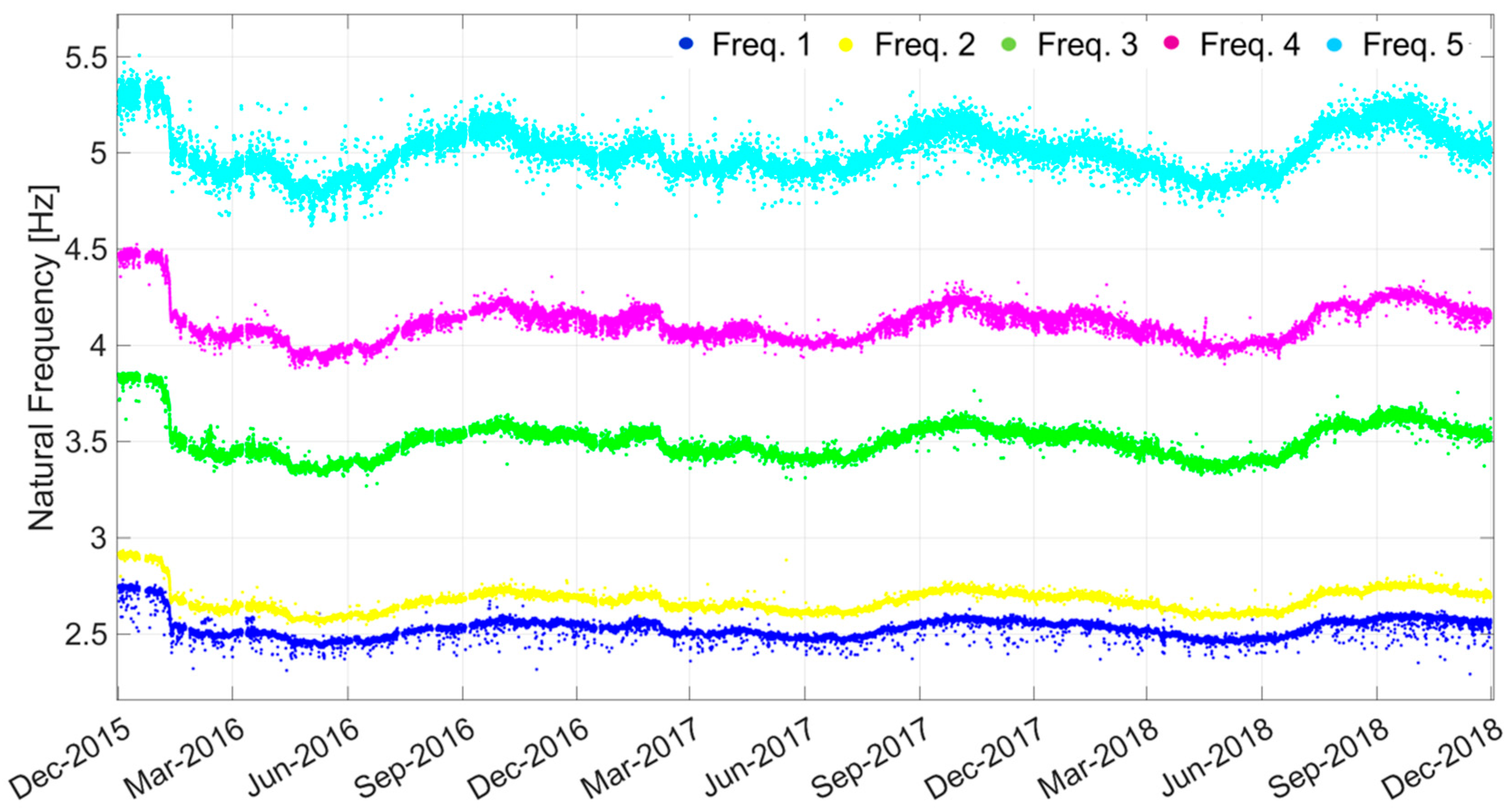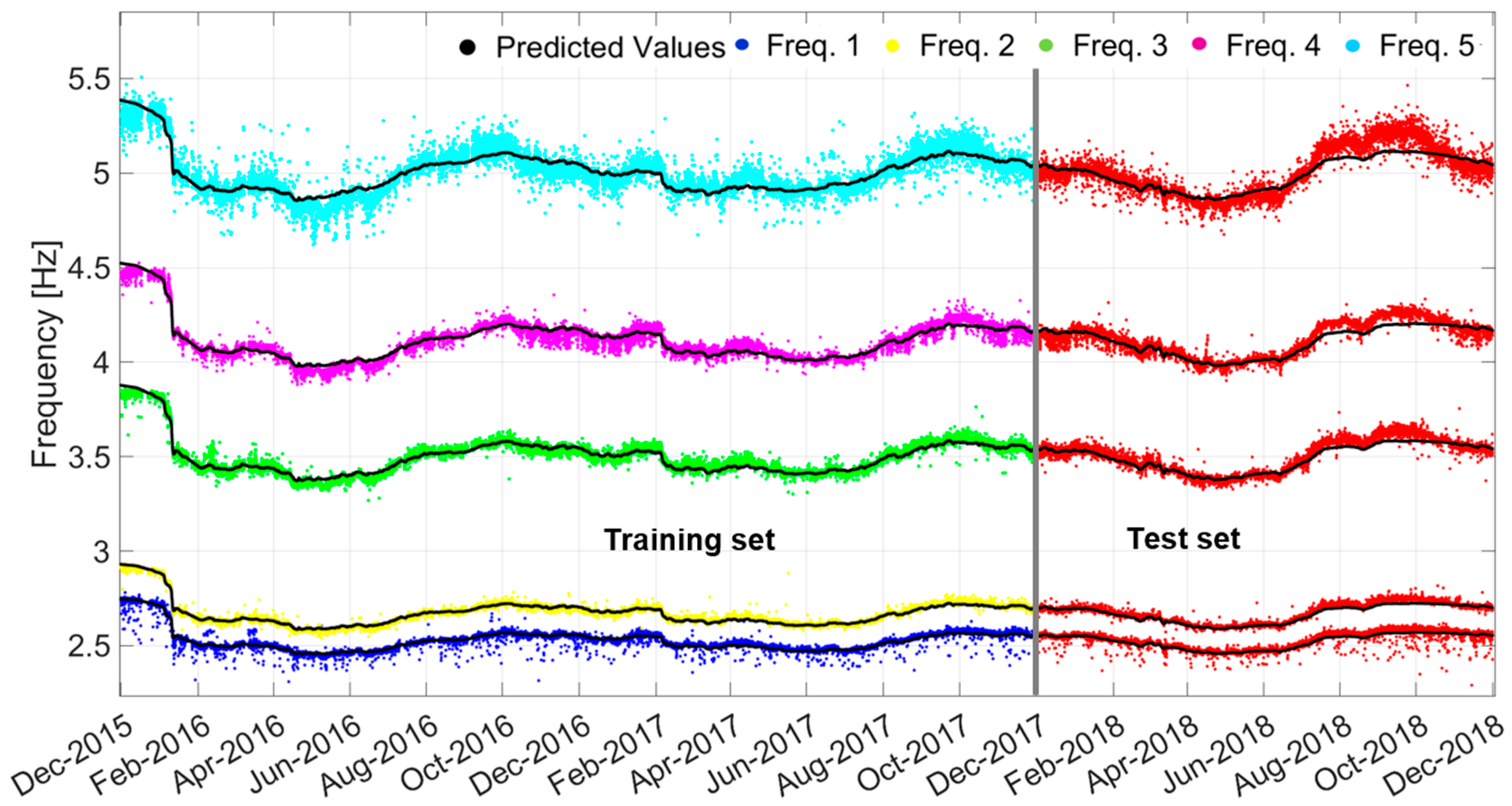 4.1. Multiple Linear Regression Models for the Characterisation of the Natural Frequency Pattern