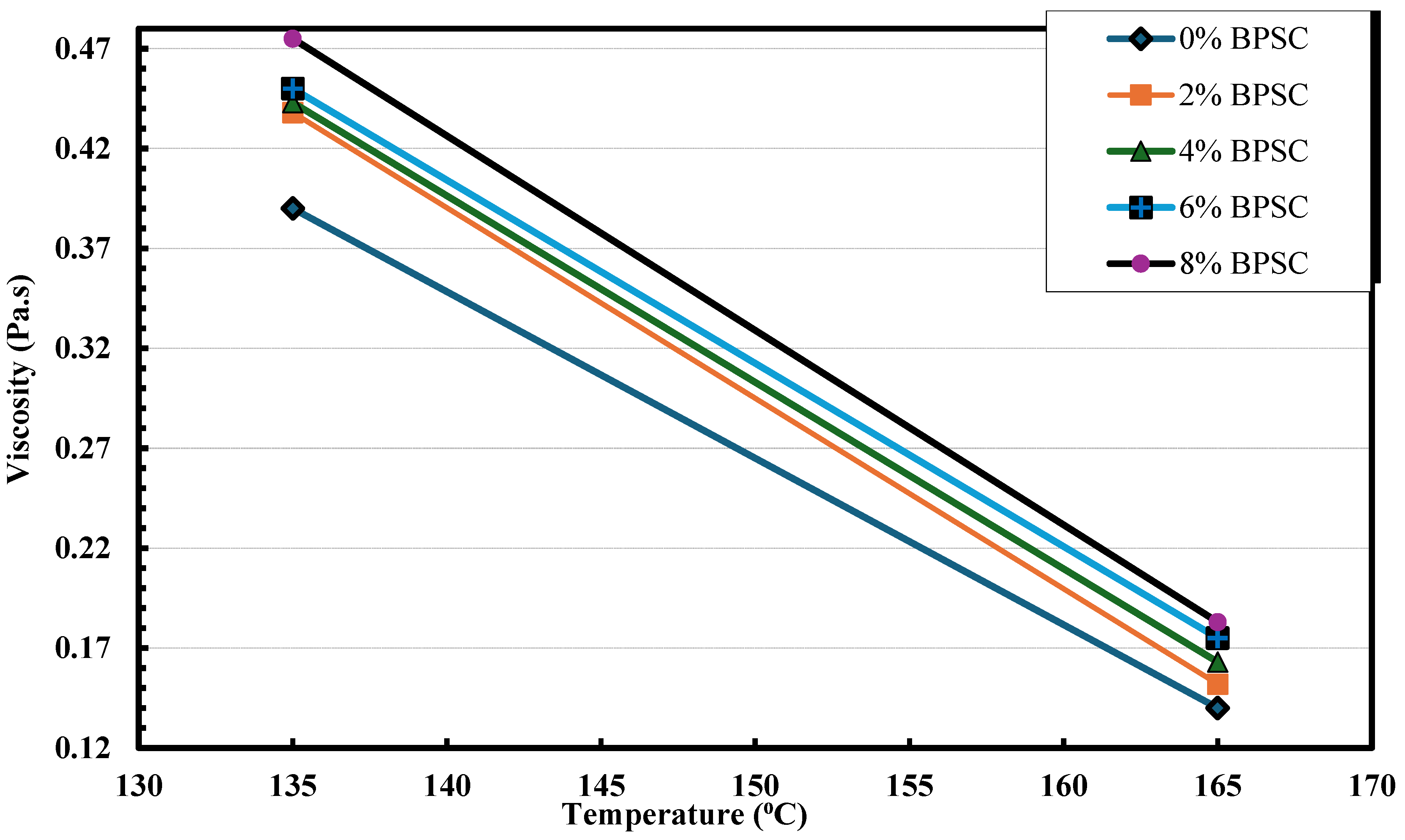 | Asphalt Weight (kg) | BPSC Percentages (%) | Total Weight (g) | Blending Speed (rpm) | Blending Temperature (C°) | Blending Time (min) |