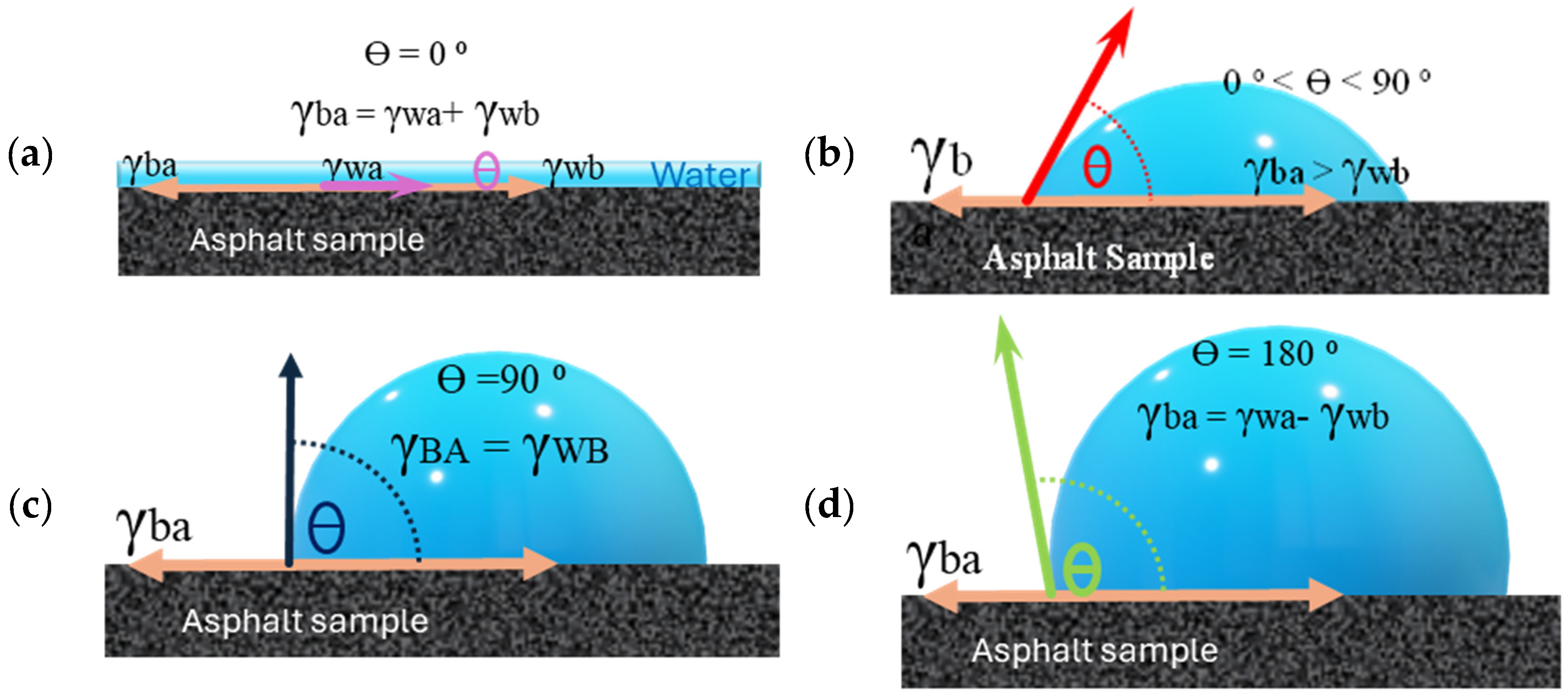 - Tan, Y.; Guo, M. Using surface free energy method to study the cohesion and adhesion of asphalt mastic. Constr. Build. Mater. 2013, 47, 254–260. [Google Scholar] [CrossRef]